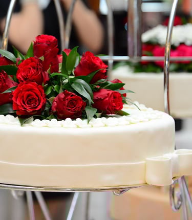 The Bride may wear a red wedding dress, symbolizing love and joy. At the wedding reception, a nine-course meal (lasting up to three hours) is very popular. A family member may act as the official "Master of Ceremonies" orchestrating family introductions, toasts, comedy sketches, and a reenactment of the newlywed's courtship.